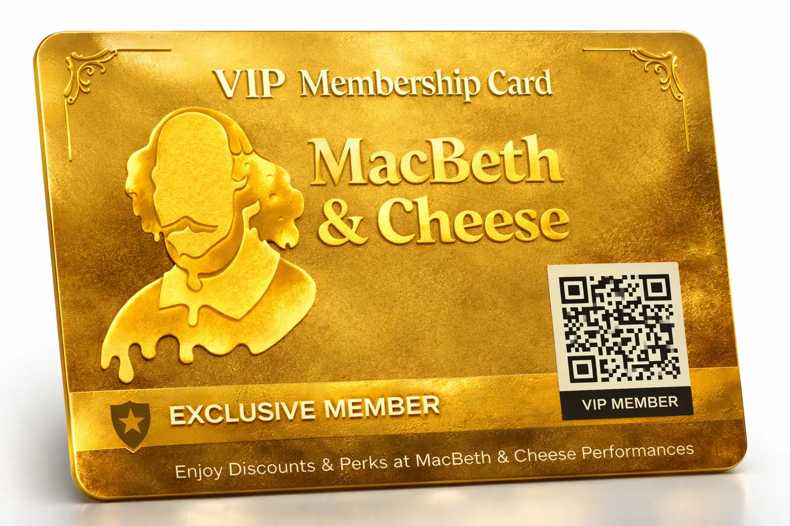 Go Gold and become a VIP supporter of MacBeth & Cheese! Your annual membership includes: